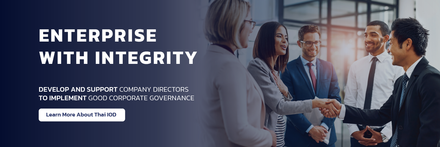 สมาคมส่งเสริมสถาบันกรรมการบริษัทไทย (Thai IOD) มุ่งมั่นพัฒนามาตรฐานการกำกับดูแลกิจการที่ดี เราคือศูนย์กลางในการพัฒนาทักษะ องค์ความรู้ ของคณะกรรมการและผู้บริหารระดับสูง ผ่านหลักสูตรฝึกอบรม กิจกรรมสัมมนา บริการประเมินและการรับรอง เพื่อสนับสนุนให้เกิดความโปร่งใสและความยั่งยืนขององค์กรไทยเทียบเท่ามาตรฐานสากล